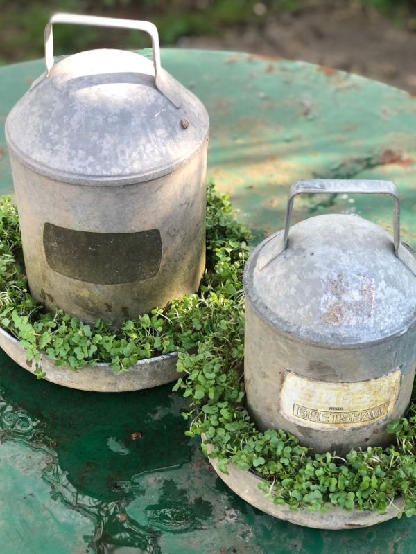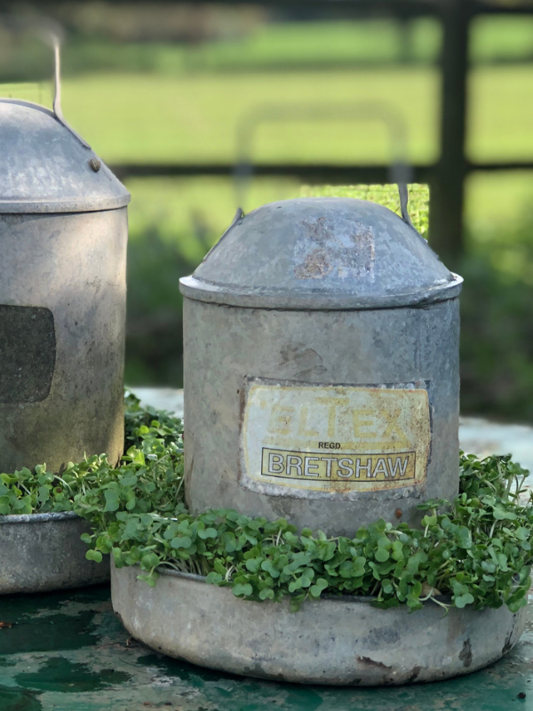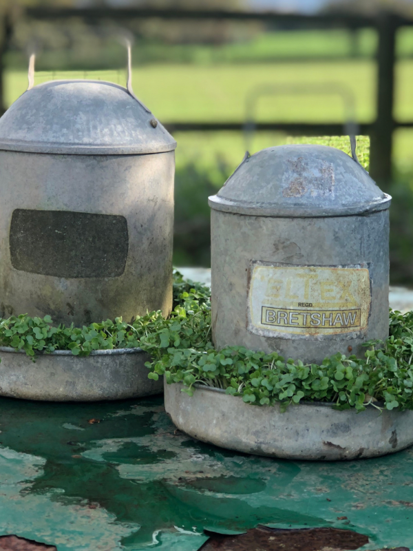 My dream of having chickens pecking by the back door was sadly not to be, but that didn’t stop me buying up all the vintage feeders I could find, heck no!