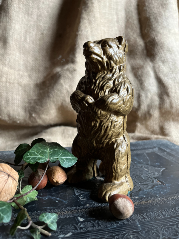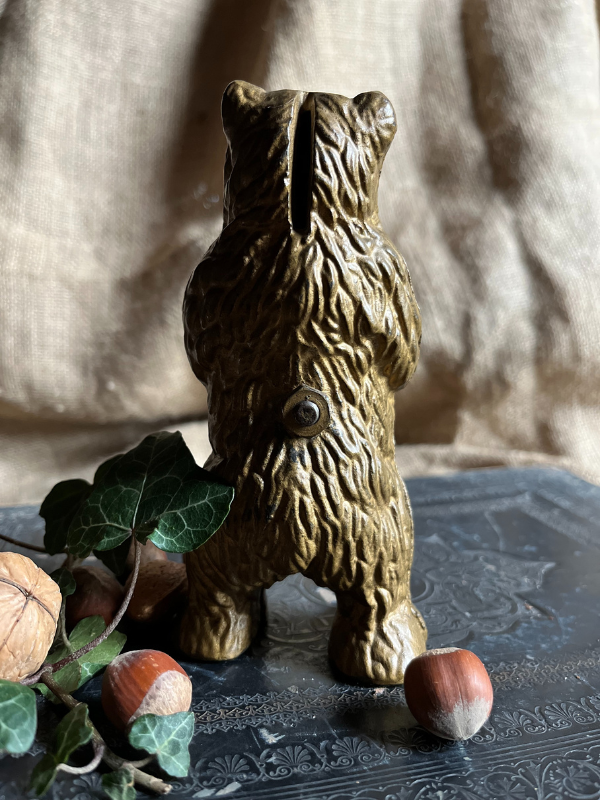 I adore the look of this super collectable 1940’s old cast metal money box- it’s the way he holds his paws I think that make him so endearing.