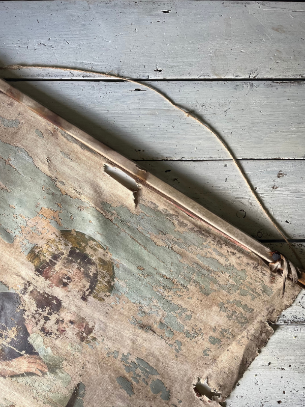 Distressed to the point of ghostly, the skeletal look of the canvas in places, lends an air of fragility to this unique piece.